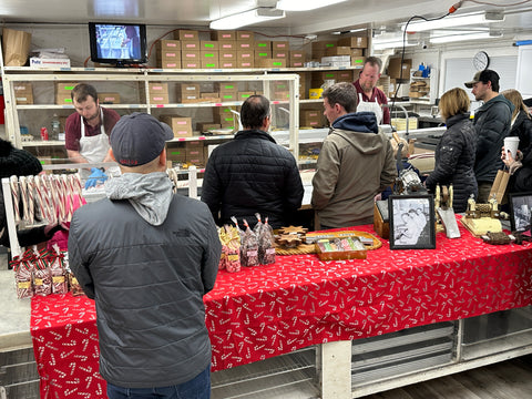 Our factory is open for Christmas Candy demonstrations Black Friday and every Saturday from Thanksgiving through Christmas.