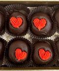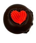 A delicious creamy peppermint treat covered in dark chocolate and topped with a royal icing heart.